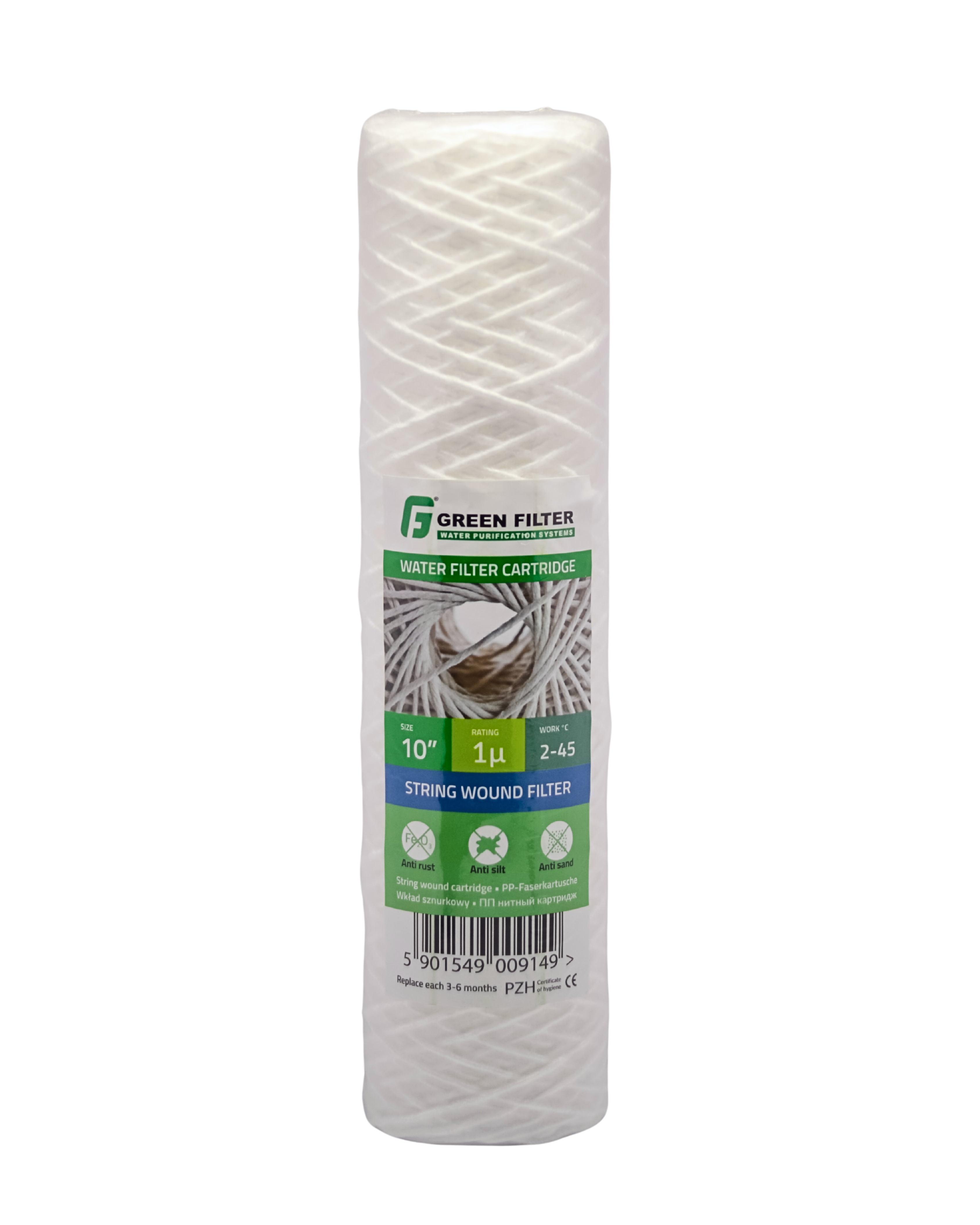 💧 Cartușul cu fir înfășurat 10″ cu finețea de filtrare de 1 micron este destinat filtrării mecanice a apei reci, reținând nisipul, rugina, nămolul și alte impurități solide. Este realizat din fir de polipropilenă, înfăș...