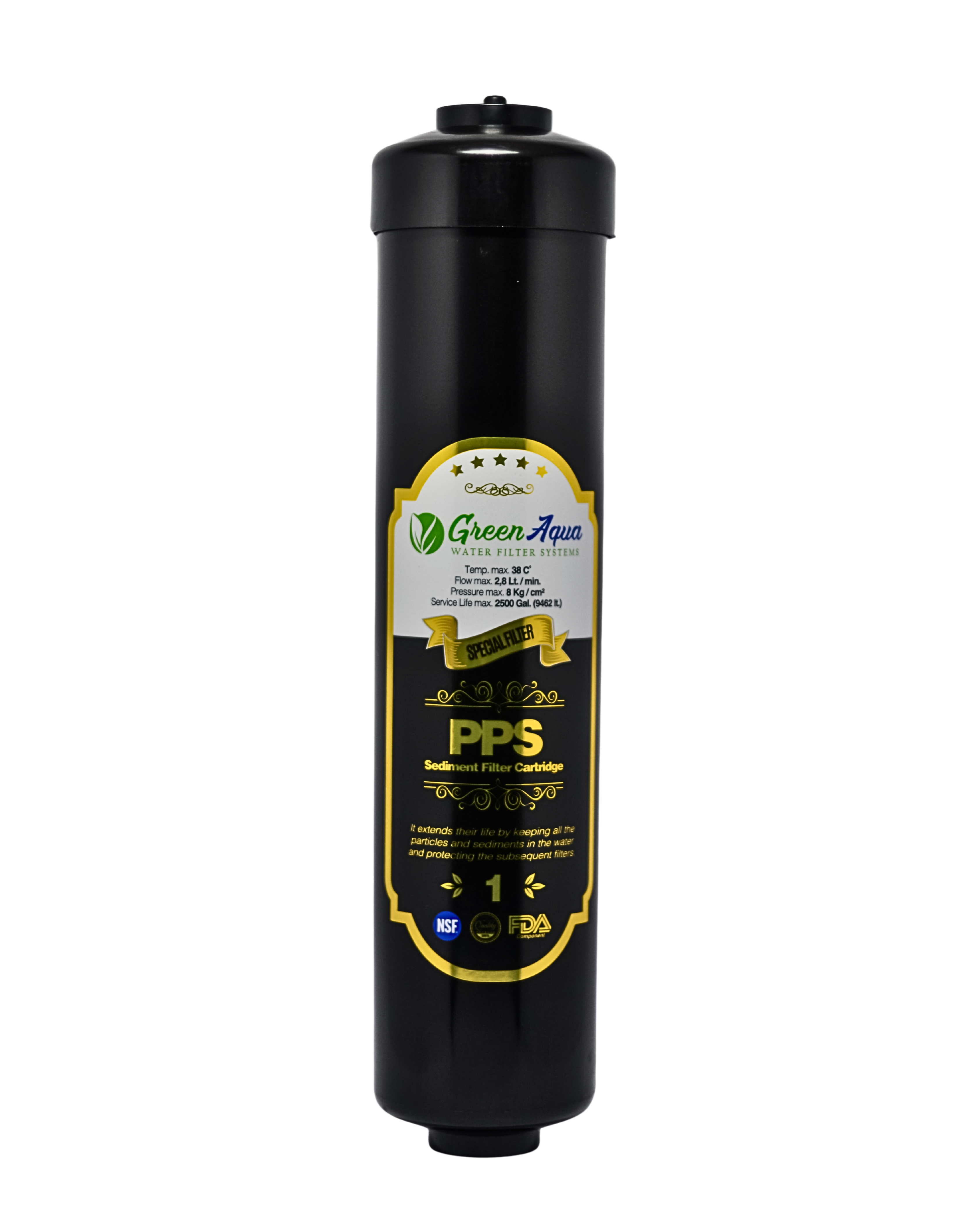 GreenAqua PPS Inline Sediment Filter 2,5" (стадия 1) 💧 🧱 Линейный механический картридж предварительной очистки, предназначенный для удаления песка, ржавчины, ила и других твёрдых примесей из воды. 🔬 Картридж эффект...
